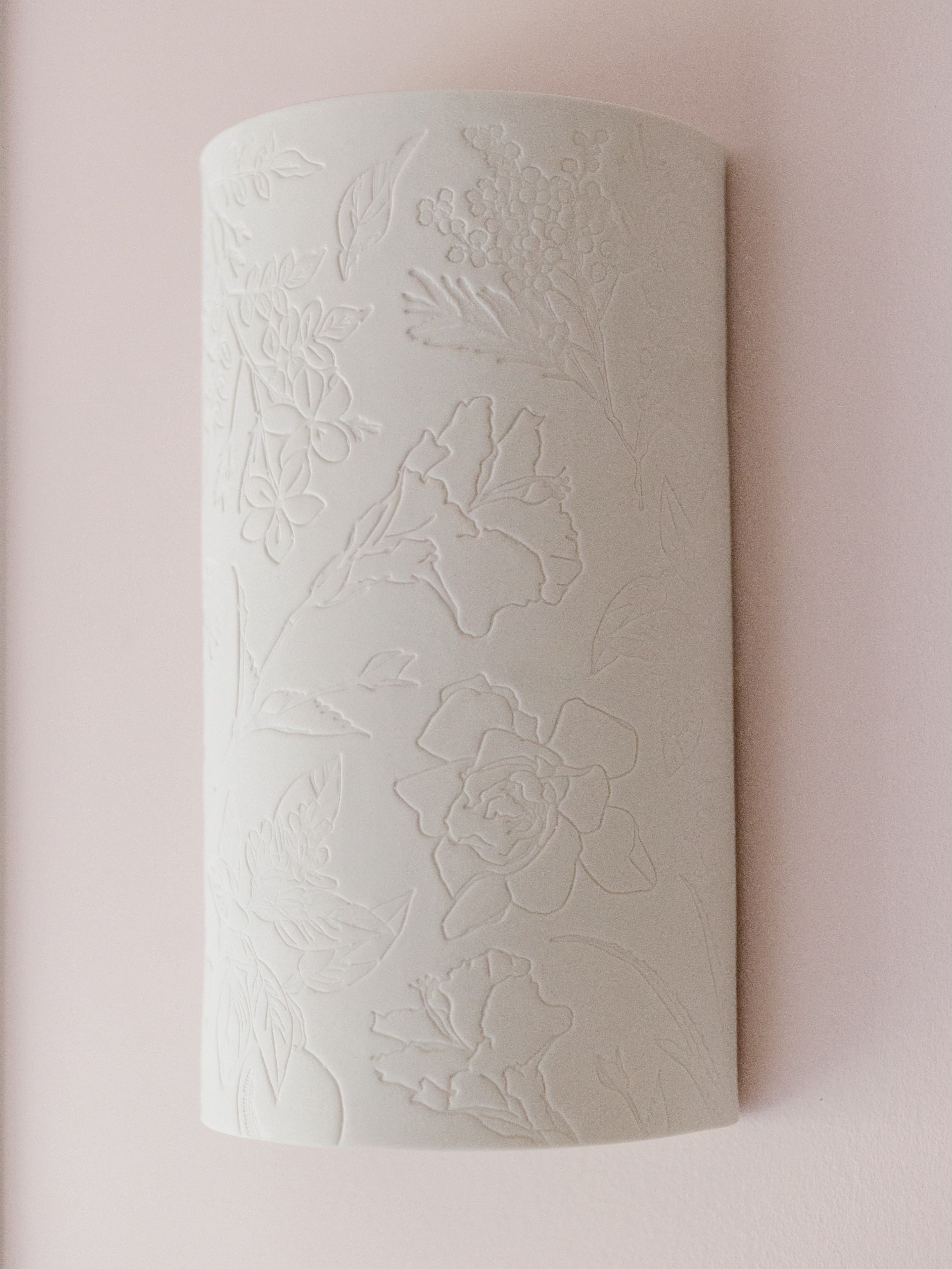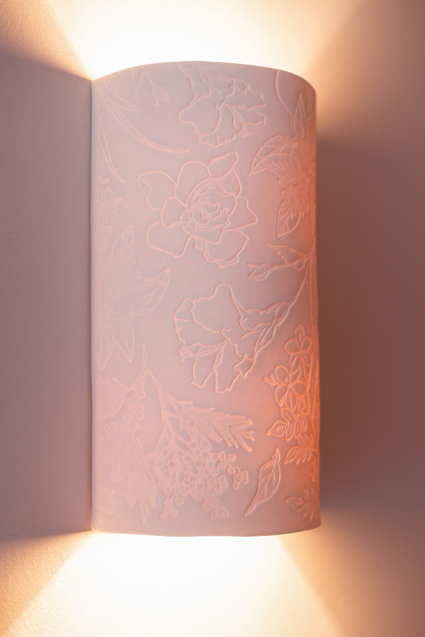 In fact we even used letterpress plates to make our porcelain sconces - Amanda pressed them in to the moulds, which then created the texture inherent in the porcelain that you can see and feel, and for which the light glows through.